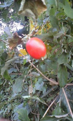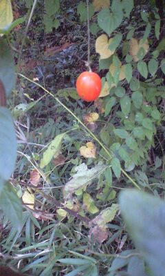 近くに雑木林があったりします。そこの脇で実をならせていたカラスウリに出会いました。