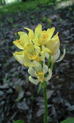 昨日、大学内の雑木林にキンランが咲いているというので撮りに行ってきた。埼玉県には自生地が多かったらしいが開発で次々に消えている。大学のものは一昨年開発現場から地元の人たちが移植したもの。株は小さいが見事に根付いて群生している。ギンランも何株かあった。