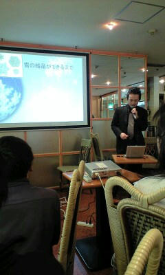 今日のテーマは雪の結晶。なぜ六角形なのかについて明治大学の長島和茂先生にレクチャーしていただいた。湿度と温度によって結晶の形が違うらしい。その研究は有名な中谷宇一郎先生によって既に研究されているのだが、その形成のメカニズムは単純なものではないらしい。熱力学と流体力学、なにやら複雑系のあたりの関係する話らしかった。印象的だったのは我々が雪の結晶として知っている綺麗な六本の枝が伸びさらにそこから二次枝が伸びた形の雪の結晶というのはめったに見れないということ。今はない雪印のマークのような綺麗に揃った雪は珍しいという話が何か真実とはそういうものだという感じでうれしかった。学校ではどうして物事をすごく単純にそしてそれ以外に疑いようもない真理のように教えるのだろうと常々感じているのでそれを聞いた時何か痛快な気持ちになった。