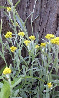 スギの木の根元に生えていたハハコグサです。雑草なのに美しく見えました。