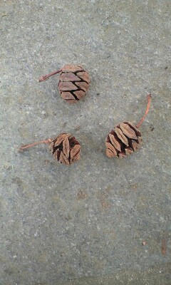 もうすっかり開いていますので種はないと思います。松ヤニのような樹脂が、落ちてすぐはすごいのですが、もうそれもありません。もうすぐ鱗片の一つひとつがバラバラになります。