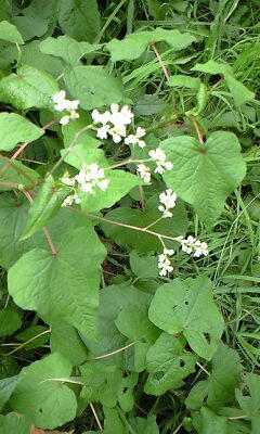 そしたら近くの空き地に真っ白なこぼれ種のソバの花。