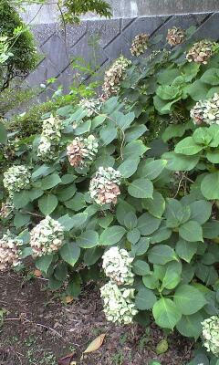 アジサイは花が終わるとたいていは剪定され、短く刈り込まれた状態で冬を越すことが多いのですが、この写真のように手を入れないでおくとこんな感じになります。