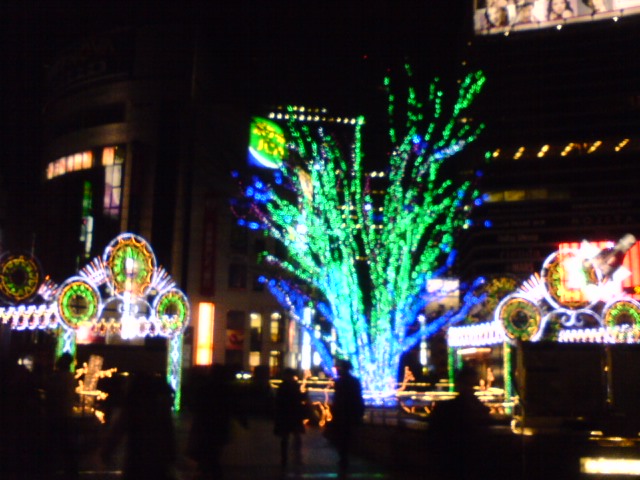 大宮駅前のイルミネーション。ケヤキにイルミネーションを見事に這わせた幻想的な作品だ。近くに寄って確認したのだが、透明のチューブの中にLED電球が直列に数珠つなぎになっている。これは耐久性がない昔の電熱電球では難しかっただろう。1シーズンはもっても次のシーズンには切れた豆球を取り替えなければならない。だから直列ではないはずだ。ということはチューブに入れ込むこと事態が困難だったかも。耐久性があり、消費電力が十分の一。こんなところにLEDが重宝がられる理由があるのだろう。